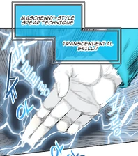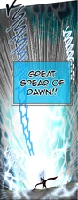- Maschenny Style Spear Technique: Transcendental Skill: Great Spear of Dawn: A technique used by the data of young Maschenny. After using Redan, Maschenny attacked the data of young Zahard with this technique. Despite only manages to crack his mask, it can be assumed to be one of her most powerful techniques as she mentioned "putting everything on the line" moments before.[5]