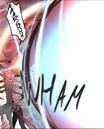Urek Mazino once discovered the Red Thryssa during his last visit to the Floor of Death. At that time it was still weak, however, Urek realised its power had properties similar to that of a Administrator. At first, Mazino wondered what to do with it. Ultimately he decided to hand over that power to a person who would use it properly. Having encountered Hell Joe at one of the holes on his previous trip to the 43rd Floor, Urek deemed Joe to be suitable to use its power, entrusting it to him, thus Hell Joe acquired personal usage of the Red Thryssa's powers.[4][5] After its defeat at the hands of Urek Mazino and Baam, it appeared as a red orb that went inside Baam. Urek Mazino was surprised that he felt the Red Thryssa inside of Baam.