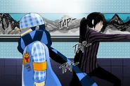 While their battle continues, Love can't cease to be amazed by Viole's ability to quickly pick up his techniques and his potential for growth. Though both sides appear to be evenly matched, at one point Love manages to grip Viole's arm and stopping him for long enough to claim the remote. Now that their battle has ended, Love, who doesn't want to fail Viole just yet, proposes this: "Give up on FUG and accept your teammates. That strength of yours, use it for the right path".